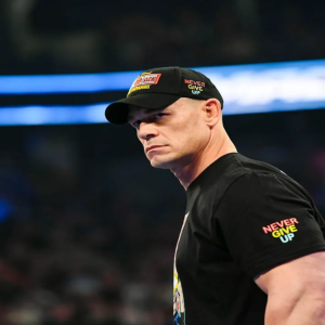 LAS VEGAS, NEVADA – APRIL 18: John Cena enters during Cody Rhode’s Promo During Friday night … More Smackdown at T-Mobile Arena on April 18, 2025 in Las Vegas, Nevada….