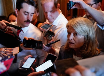 Lisa Murkowski speaks to the press after voting yes on the bill. Photograph: Elizabeth Frantz/Reuters