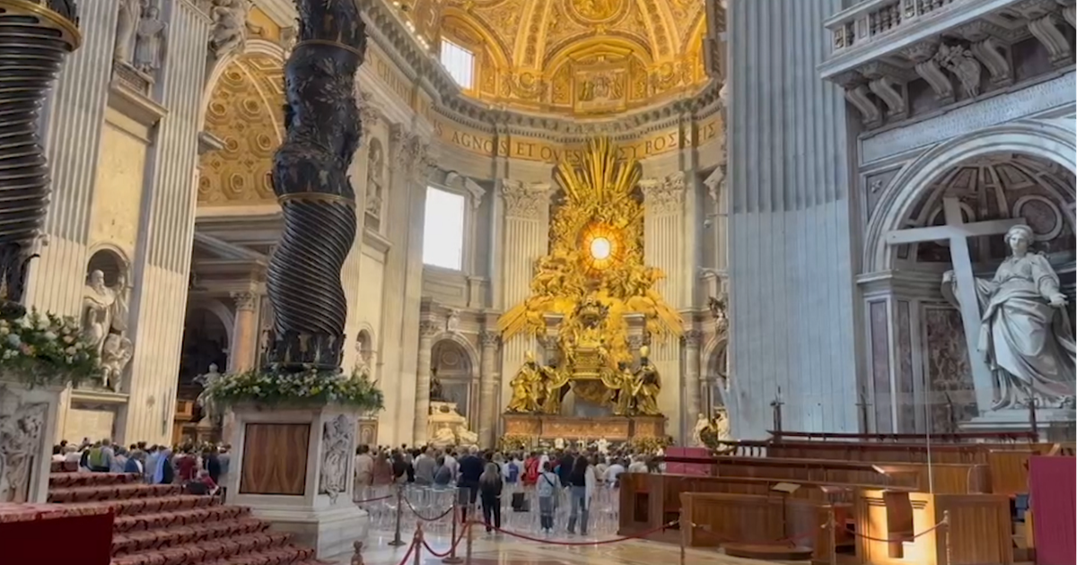 She was able to enter Saint Peter’s Basilica in Vatican City as part of a tour, and captured singing inside as they mourn and remember Pope Francis.