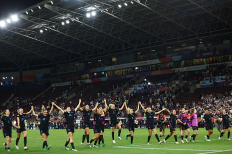 England players celebrate in front of their fans. Photograph: Piroschka Van De Wouw/Reuters