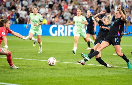 England’s Chloe Kelly goes past Italy’s Lucia Di Guglielmo … Photograph: Matthew Childs/Reuters