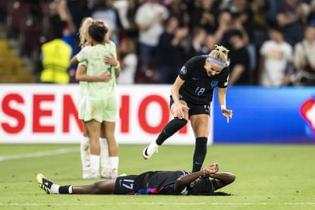 England’s remarkably late comeback, with Agyemang scoring in the sixth minute of second-half stoppage time before Kelly’s winner in the penultimate minute of extra time, booked the Lionesses a place in their third consecutive major tournament final. They will face either Spain or Germany in Basel on Sunday, trying to defend the title they won in 2022.