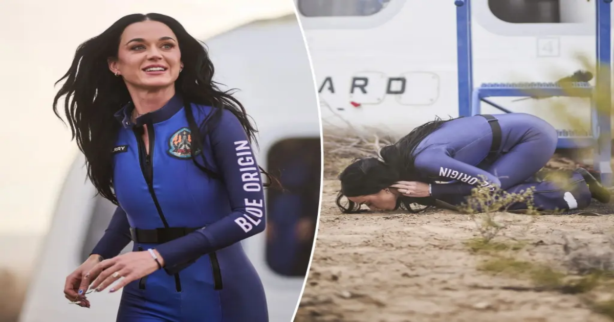 But she was slammed online — including by other celebrities — for also revealing a butterfly-shaped note promoting her upcoming tour dates and dramatically kissing the ground when the capsule landed back at the Blue Origin base near Van Horn, Texas.