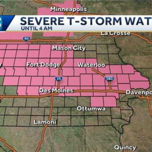 A severe thunderstorm watch was canceled for north-central Iowa, about two hours before its scheduled expiration. The watch remains in effect for parts of northeast Iowa until 4 a.m. Tuesday.As…