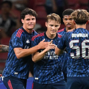 The Gunners had beaten AC Milan 1-0 on Wednesday and came from behind to record another victory here despite Anthony Elanga giving United an early lead. Elanga was handed his…