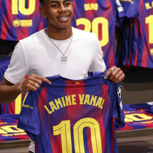 Lamine Yamal posa con su nueva camiseta del Barcelona tras firmar una extensión de contrato, el miércoles 16 de julio de 2025. BARCELONA — El Barcelona finalmente jugará un partido de pretemporada…