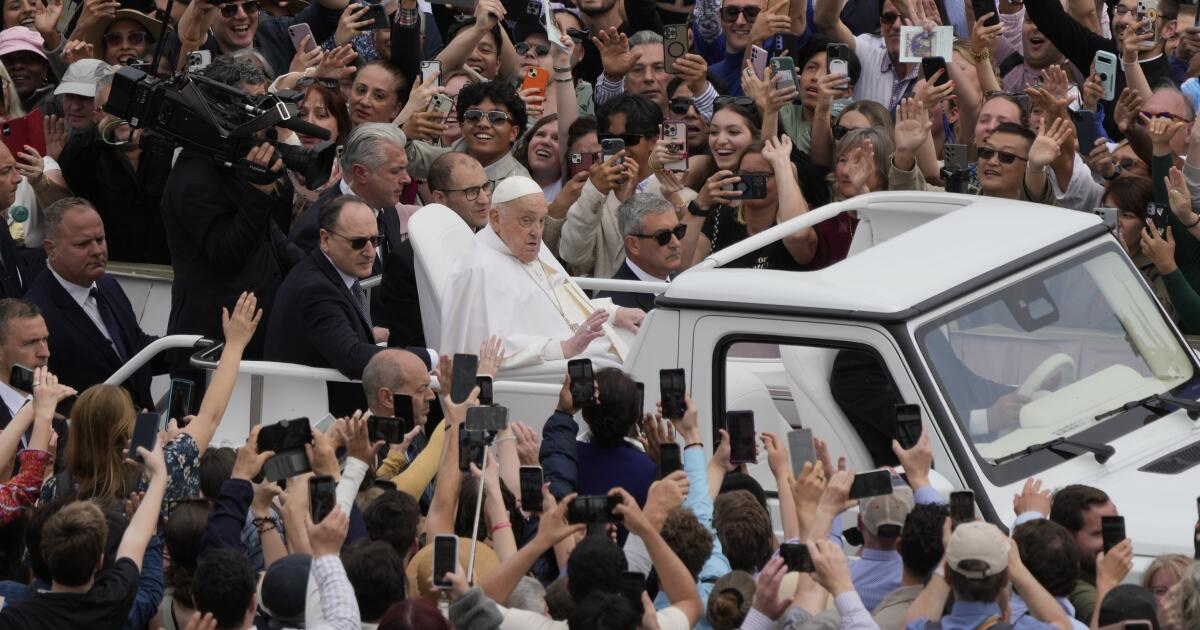 “Viva il Papa!” — long live the pope — and “Bravo!” the crowd shouted as Francis looped through the square in his open-topped popemobile and then up and down the main avenue leading to it. He stopped occasionally to bless babies brought up to him, a scene that was common in the past but unthinkable just a few weeks ago as the 88-year-old pope fought for his life.