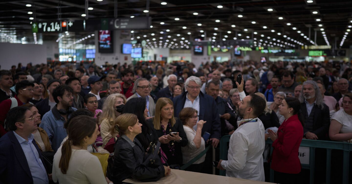 At Spain’s largest train stations, droves of travelers waited Tuesday to board trains, or to rebook journeys. At Madrid’s Atocha station, hundreds stood near screens waiting for updates. Many had spent the night at the station, wrapped in blankets provided by the Red Cross.