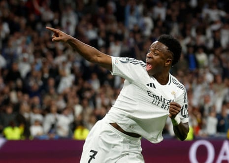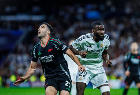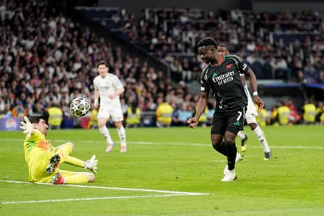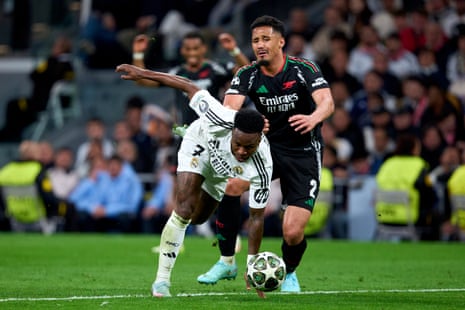 Vinicius Junior pulls one back after an Arsenal calamity at the back. Photograph: Pierre-Philippe Marcou/AFP/Getty Images