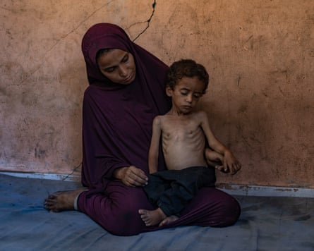 Palestinian child Yazan Abu Foul, aged two, is cared for by his mother, Naima, as he suffers from severe malnutrition. Photograph: Haitham Imad/EPA