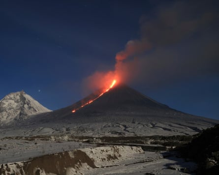 The Klyuchevskoy volcano on the Kamchatka peninsula in Russia’s far east has started erupting after Wednesday’s powerful earthquake. Photograph: Yuri Demyanchuk/AP