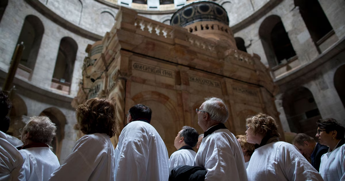 The Church of the Holy Sepulchre is also believed by Christians to house Jesus’s tomb. The idea that Jesus was buried close to the place of his crucifixion comes from the Bible. The Gospel of John states that there was a garden “in the place where Jesus was crucified” (John 19:41) and that Jesus was buried in a new tomb there because it was nearby. Visit the Church of the Holy Sepulchre today and you can see the specific locations associated with the place of crucifixion, the place Jesus was laid out and prepared for burial, and his tomb (enclosed in a shrine called the aedicule). The Church is a holy place for Roman Catholic, Greek Orthodox, Armenian, Coptic, Syriac and Ethiopic Christians.
