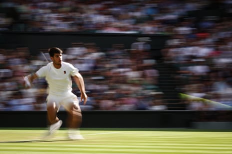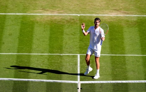 Carlos Alcaraz takes the third set. Photograph: Henry Nicholls/AFP/Getty Images