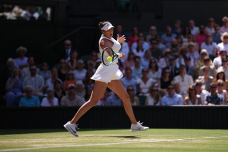 *Sabalenka 1-1 Anisimova Sabalenka smites a forehand winner down the line, then a return flies long; 30-0. But a poor second serve allows Anisimova to attack and incite the error – look out for that as a feature, because that facet of Sabalenka’s game is a relative weakness – then at 40-15, a terrible drop allows the American to make a cup of tea prior to swatting a backhand winner. But a big serve takes care of the next point, so we’re level at a game apiece.